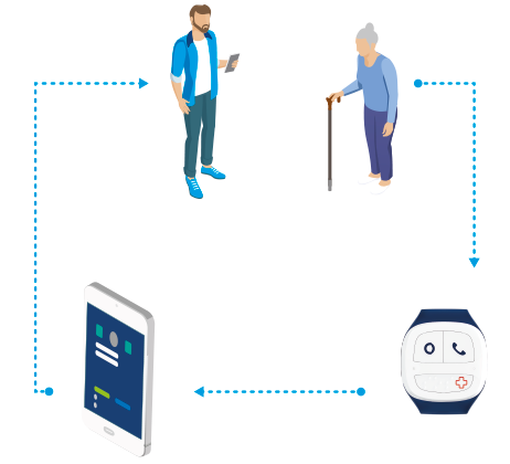 Puoi monitorare la persona assistita dall'app mobile Comarch CareMate. Come funziona? Semplice. Puoi accedere direttamente dall'app alle informazioni raccolte dal bracciale su chi lo indossa. Puoi contattare la persona immediatamente e fornire l'aiuto necessario.